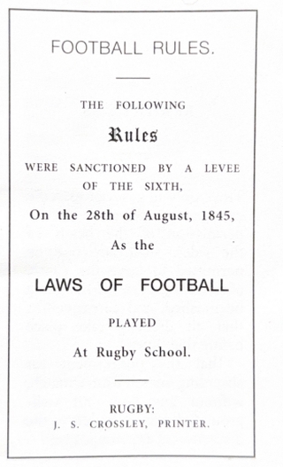 1846-ban kiadták a Rugby-Football szabálykönyvét és két évre rá külön választották a „rugby football és a football” szabályait.