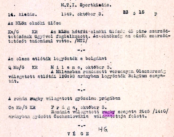 "Az 1947-es év a STADION magazin új számával zárul, amelyben egy terjedelmes cikk szól arról, hogy milyen fontos a rögbi az új rendszerben.