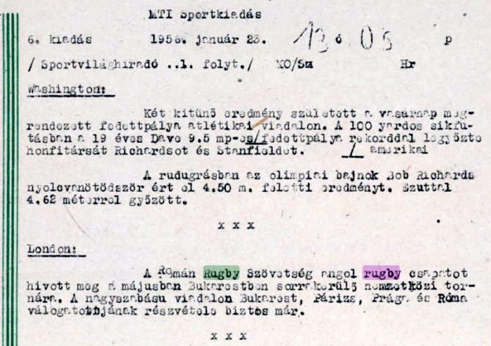 "Nemrég Dumitrescu Emil professzor úr Constantából rám bízta (rövid időre) 6 dobozt, mely tartalmazza a SPORT és STADION folyóirat teljes gyűjteményét az első (1947-ben megjelent) számtól az utolsó számig (1992). Nekem és a bátyámnak van türelmünk minden cikket átnézni a rögbi játékról. Beszkenneltem ezeket a cikkeket és időrendbe rendeztem. A fent említett magazinok lapjain szereplő információk arra szolgálnak, hogy szemléltessék számunkra, hogy mennyire fontos a sport általában és a rögbi játék, különösen akkoriban. Lássunk ebben a bejegyzésben néhány cikket 1947 májusából."