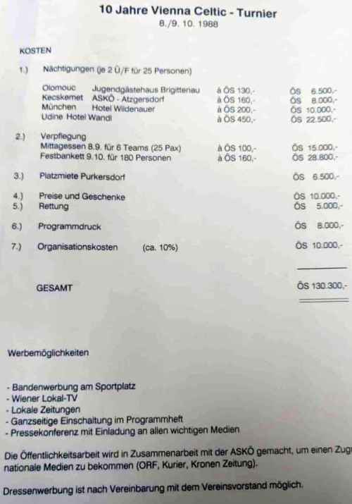 Vienna Celtic levél A Millhillnek a bécsiek 10 éves tornáján részvételről: