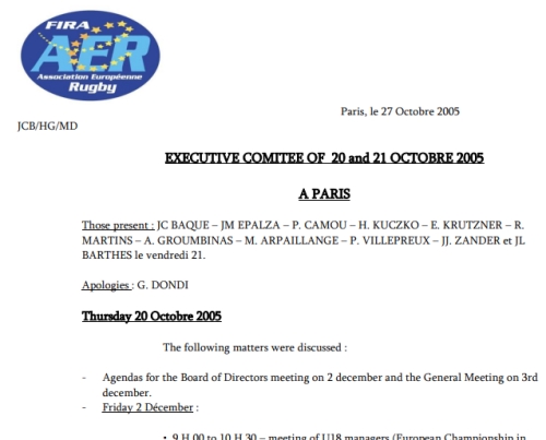 FIRA (ma Rugby Europe) Végrehajtó Bizottság, ülés napirend: