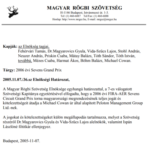 A Total Rugby producer cégének megkeresése a Szövetség irányában: